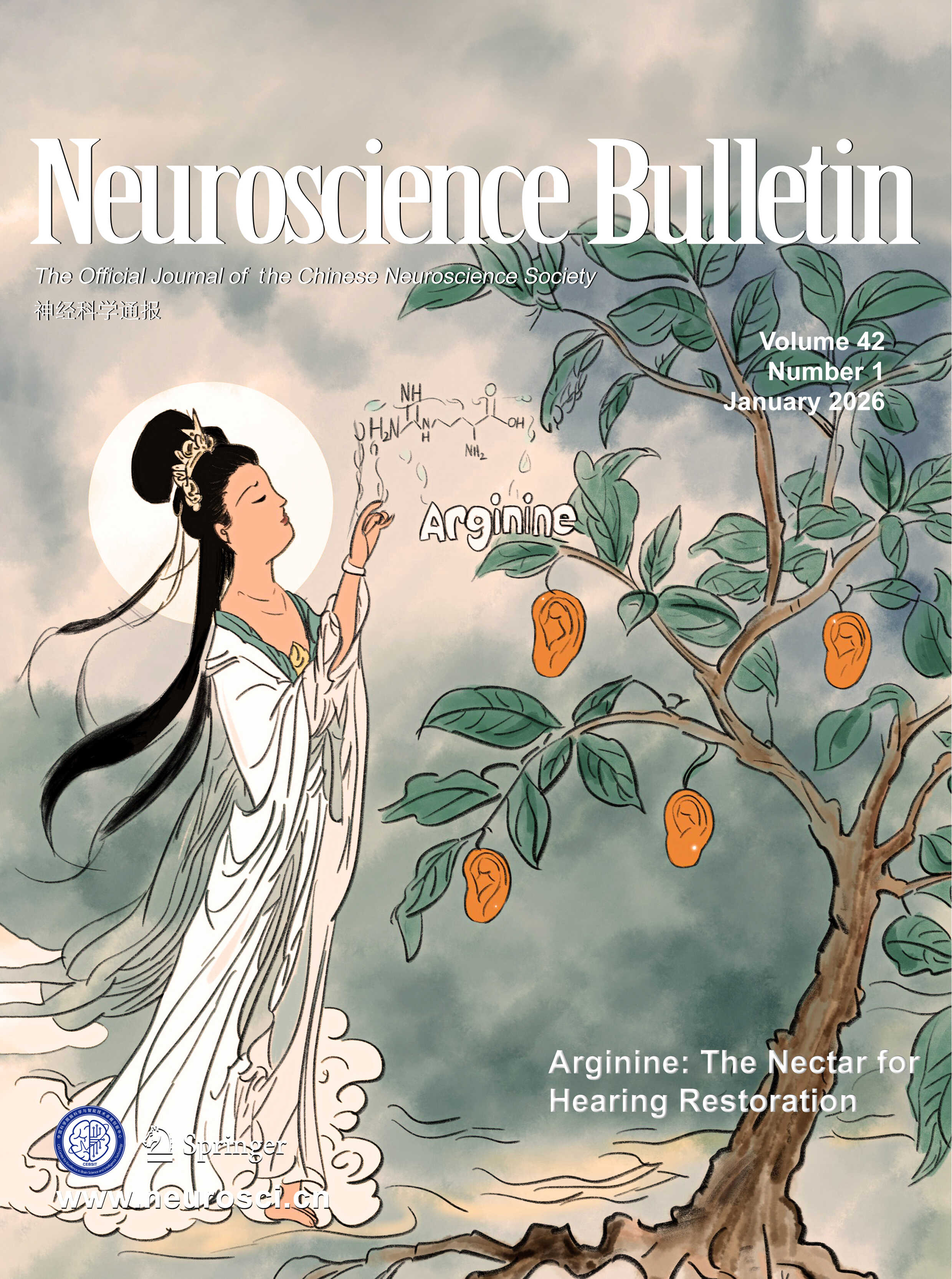 Sensorineural hearing loss is a widespread and debilitating condition with limited therapeutic drugs. In this issue, Mao et al. demonstrate that arginine supplementation enhances membrane phospholipid saturation through the Lands cycle and protects cochlear hair cells from phospholipid peroxidation-induced membrane damage and subsequent cell death. The cover draws inspiration from the classic Chinese tale Journey to the West (西游记), where Guanyin (观音, the Goddess of Mercy) revives the ginseng fruit tree with her sacred nectar. In this modern reinterpretation, Guanyin is sprinkling "nectar" containing arginine, a powerful therapeutic molecule, onto a tree bearing ear-shaped fruits. The ear-shaped fruits symbolize cochlear hair cells, which are essential for hearing, while the arginine-infused “nectar” represents their remarkable ability to protect and restore these delicate cells. The imagery beautifully conveys the idea that arginine, much like the life-giving nectar in the story, holds the potential to heal and preserve hearing function. See pages 1–18. (Cover provided by Huanyu Mao).